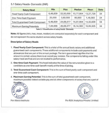 IPRS demands honesty in the details: Disclosures on offers vs accepted offers, fixed vs variable, domestic vs international salaries, Considering ESOPs vested in the first year and not four. It is a framework that reveals outcomes as they are, not as they are marketed. Which is why Altera Institute’s PGP Class of ’25 Placement Report stands apart. It is audited by B2K Analytics under the same format used by IIM-A. No projected ESOP value hidden as salary. No four-year vesting compressed into one number. Just audited data.